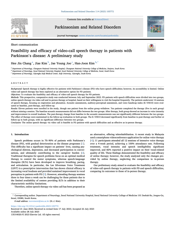 Seoul National University HospitalQ3 Development of MVP for PD speech-language treatment -